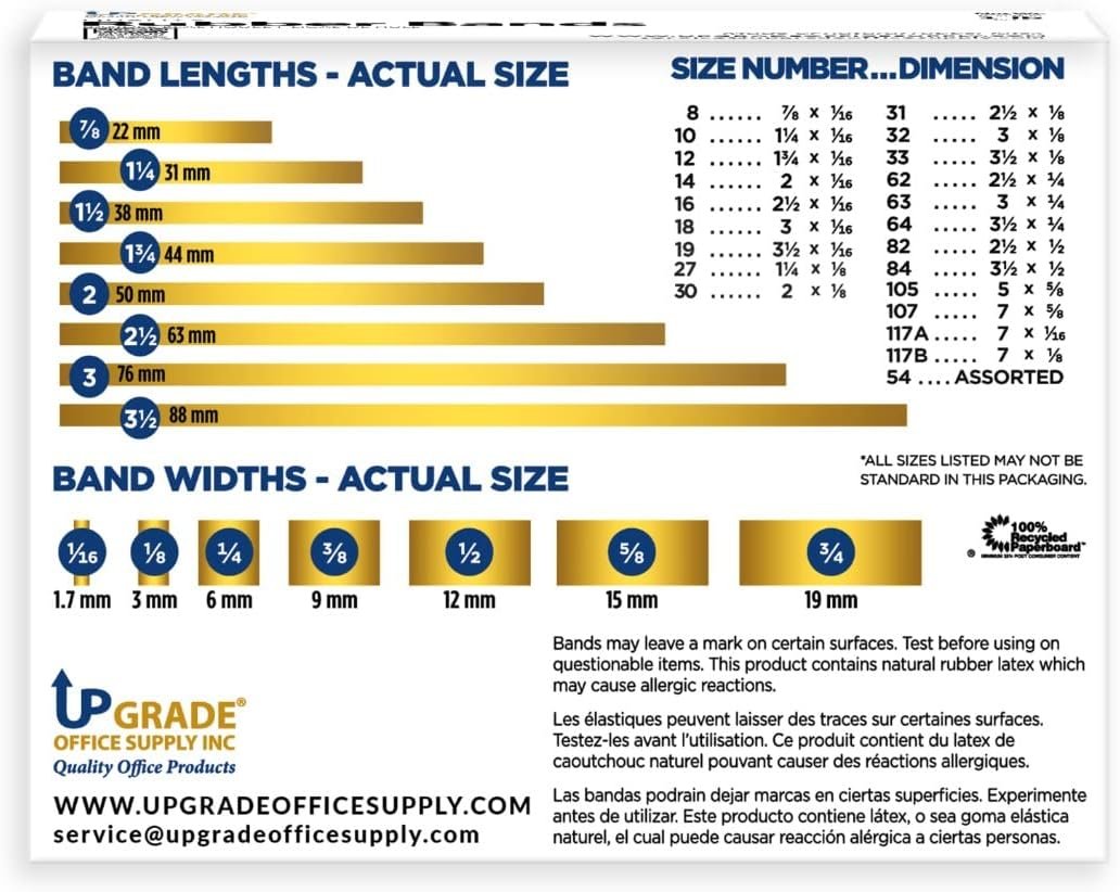 - Rubber Bands size 64, Packaged Rubber Band Dimensions (3-1/2″ x 1/4″) Unit Count Approx. 80 Bands per 4 Oz. Box Manufacturer Upgrade Office Supply, Inc. Item Weight: 4 Oz Box Product Dimensions 4.5″ x 2.75″ x 3.5″ Material Latex Rubber Color, Natural Crepe
